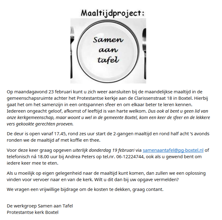 zo 22 feb 2026 om 10:00 40-dagentijd (Bij Sint-Michielsgestel)Samen aan Tafel
